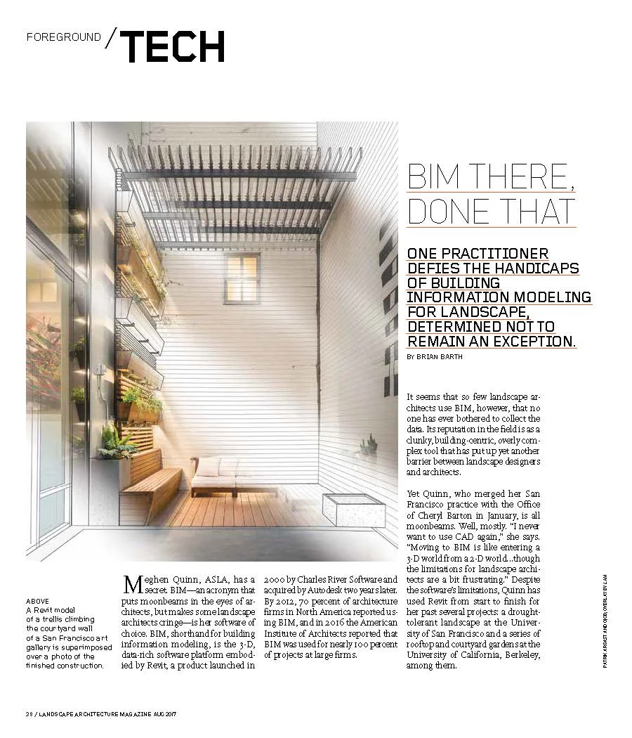 Earlier this year Meghen spoke with Landscape Architecture Magazine’s Brian Barth about how she has learned to embrace the BIM process as a landscape architect.